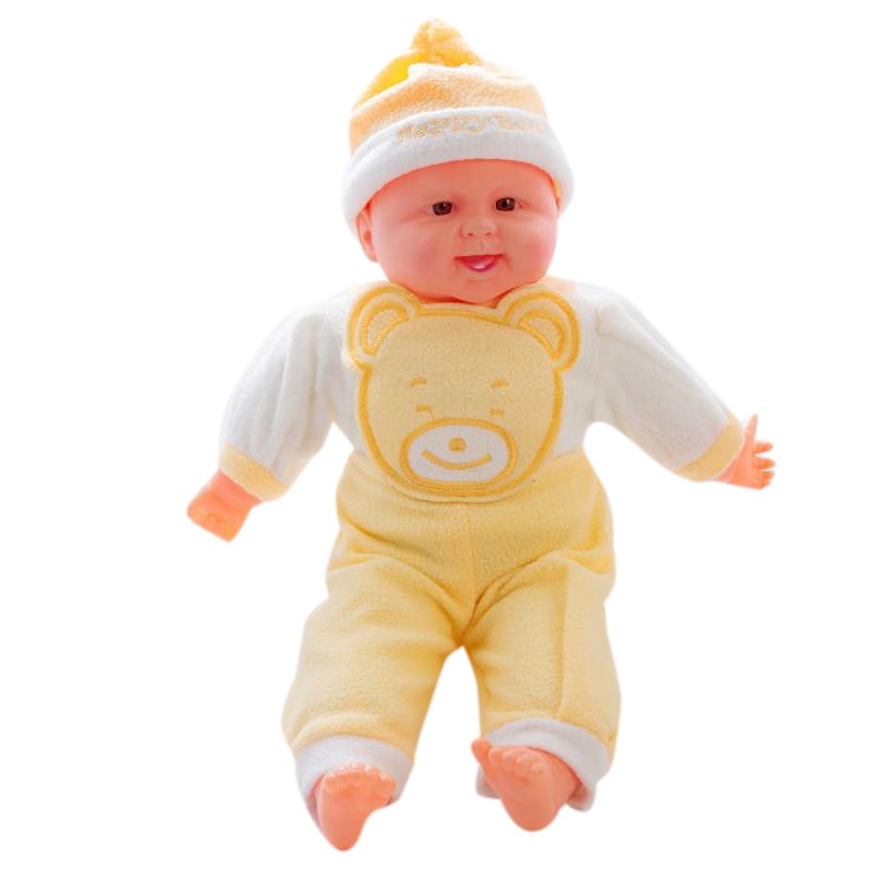Bebote con cuerpo de trapo y cabeza de goma, de 40 cm.