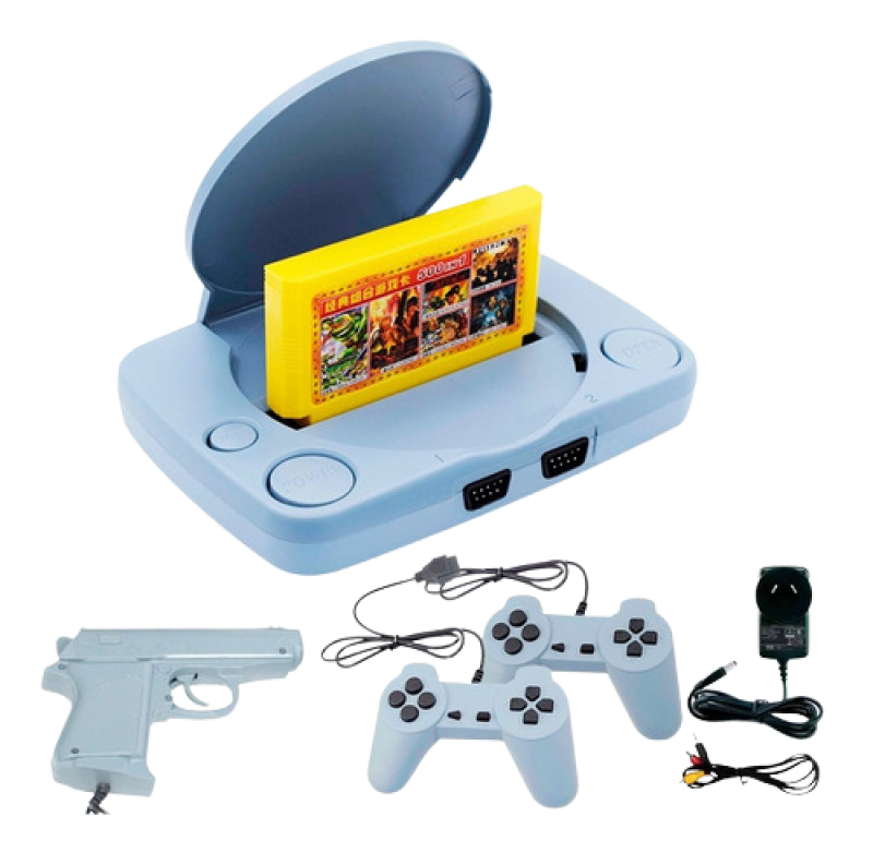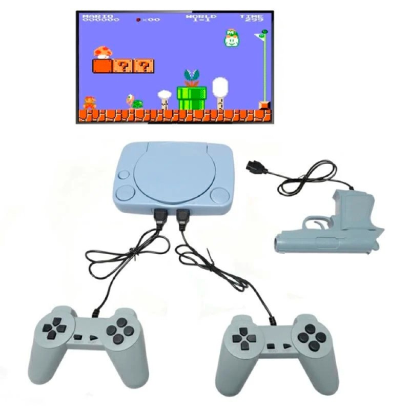 Family Game de 8 bit. Con 2 controles, 1 pistola, fuente de alimentación a 220 V. y cables para conexión a TV.