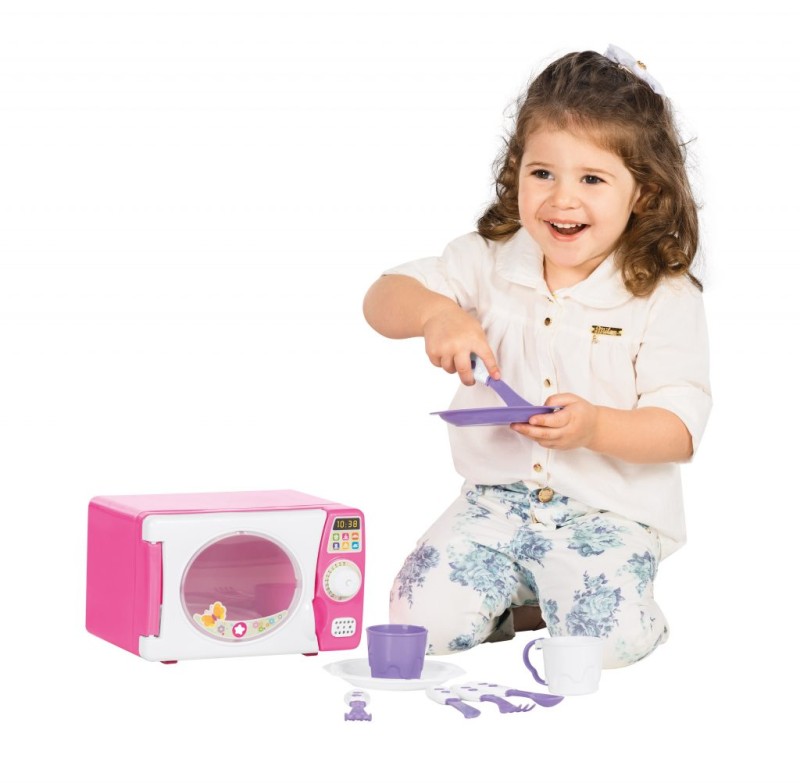 ¡El Micro viene con un botón que gira para configurar la hora y hace un ruido como un microondas real para avisarte cuando la comida está lista!